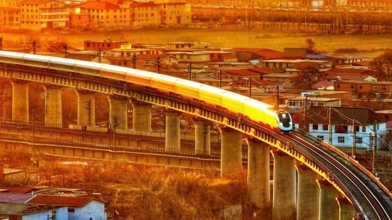 除夕當(dāng)天,石家莊動車運(yùn)用所被金色的晨曦照亮。
