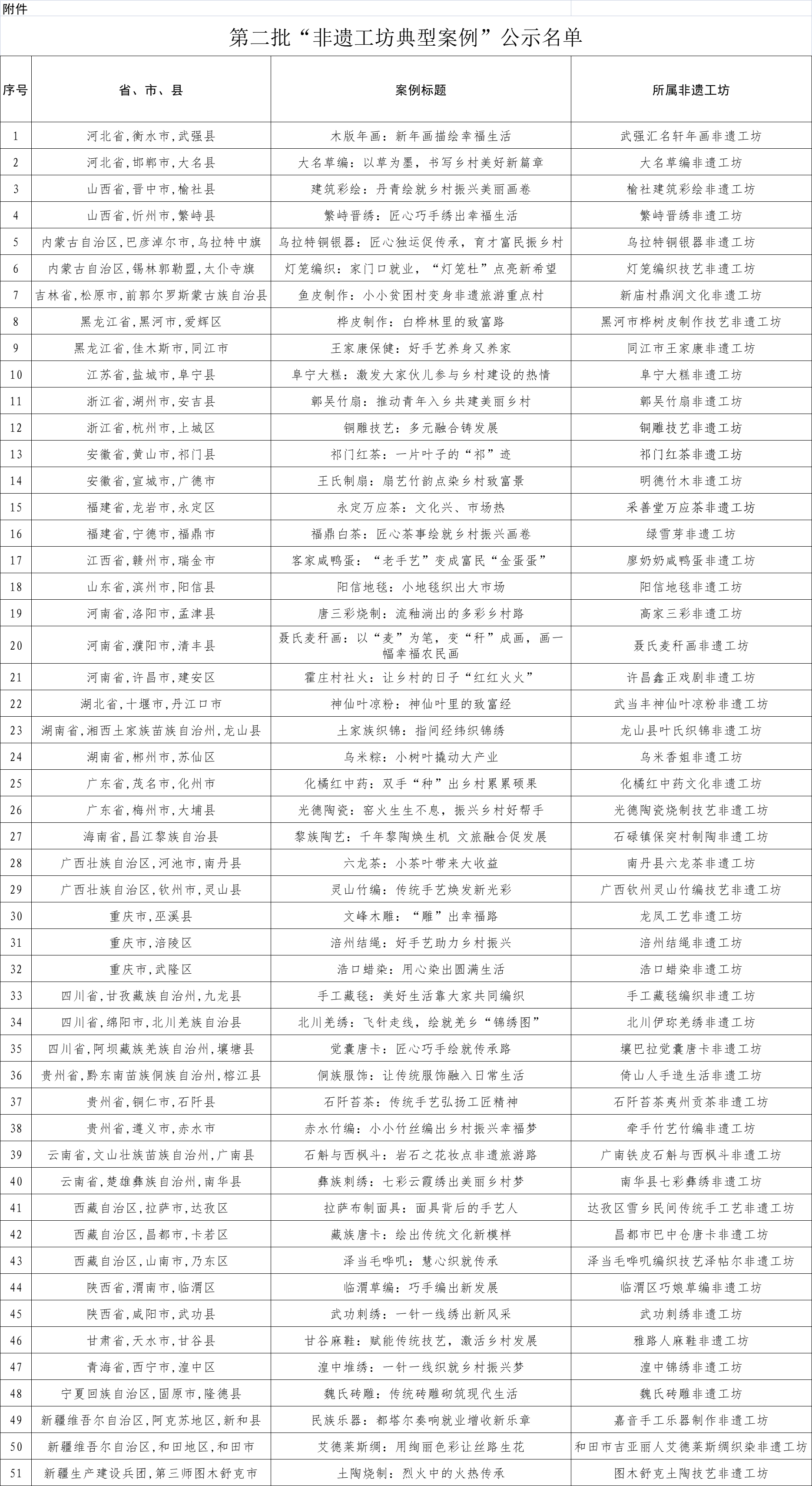 人民網(wǎng)北京3月19日電 (記者楊虞波羅)根據(jù)《文化和旅游部辦公廳 人力資源社會保障部辦公廳 農(nóng)業(yè)農(nóng)村部辦公廳關(guān)于推薦第二批“非遺工坊典型案例”的通知》,經(jīng)各省推薦和專家評議,第二批“非遺工坊典型案例”推薦和遴選工作于日前結(jié)束?,F(xiàn)將推薦名單進行公示。