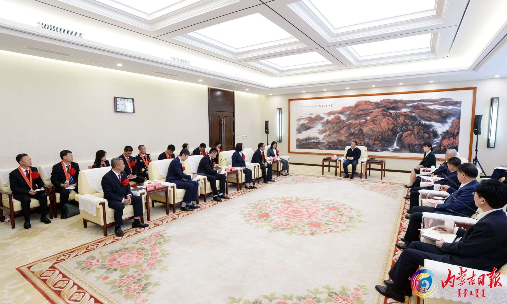 9月1日,自治區(qū)黨委書記孫紹騁,自治區(qū)黨委副書記、自治區(qū)主席王莉霞在呼和浩特會見我區(qū)全國“人民滿意的公務(wù)員”和“人民滿意的公務(wù)員集體”代表。內(nèi)蒙古日報社融媒體記者袁永紅攝