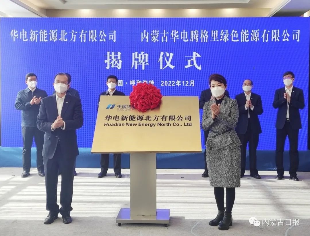 12月27日,自治區(qū)黨委副書記、自治區(qū)主席王莉霞,中國華電集團(tuán)董事長(zhǎng)江毅為新成立的華電新能源北方有限公司揭牌。記者安寅東攝