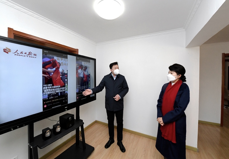 1月28日下午,王莉霞來到中央廣播電視總臺(tái)內(nèi)蒙古總站,了解新聞采編、制作、宣傳等情況。記者韓卿立攝