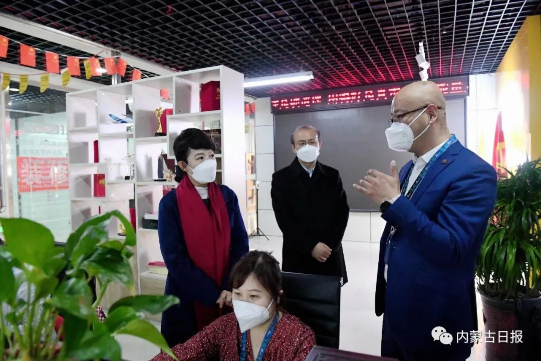 1月28日下午,王莉霞在內(nèi)蒙古騰蒙科技有限公司了解宣傳內(nèi)蒙古和自媒體運(yùn)營(yíng)有關(guān)情況。記者韓卿立攝
