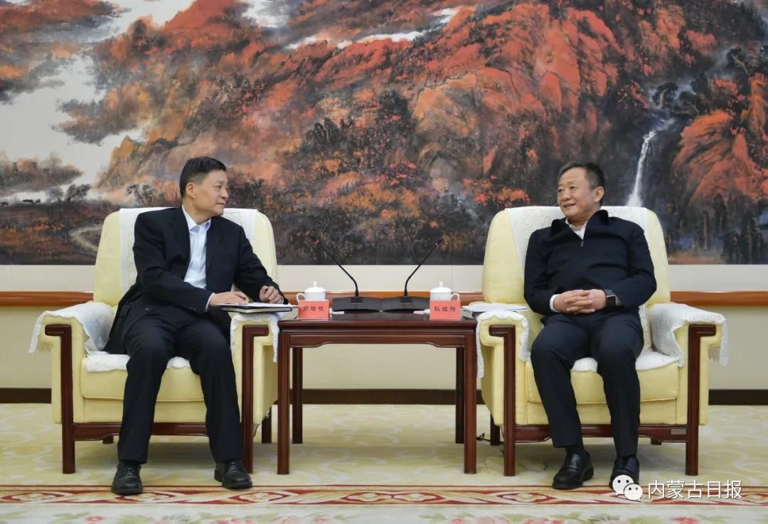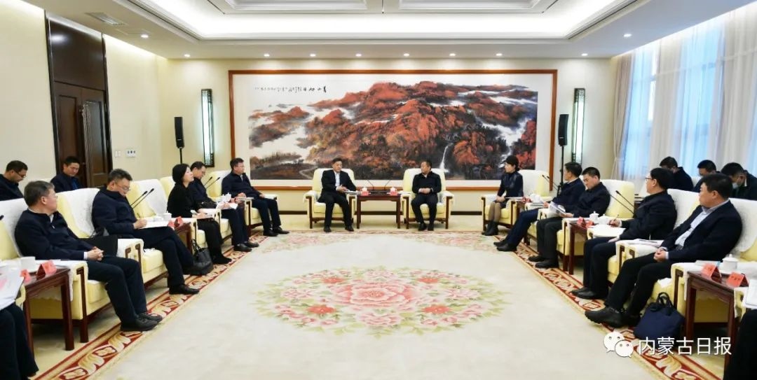 2月18日,自治區(qū)黨委書記孫紹騁,自治區(qū)黨委副書記、自治區(qū)主席王莉霞在呼和浩特會見中國東方電氣集團(tuán)有限公司黨組書記、董事長俞培根一行。內(nèi)蒙古日報(bào)社融媒體記者 馬建荃攝