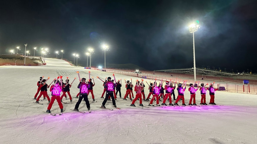 岱海國際滑雪場地處臥佛山北坡,位于北緯40°—42°之間,這里最高海拔2100米,雪道落差500米,雪道面積400000余平方米,雪道總長度14000余米,擁有國際標(biāo)準(zhǔn)越野賽道和單板標(biāo)準(zhǔn)U型槽以及“貓?zhí)被┑溃∕ogul Slope)和“波浪道”等比賽場地。(圖源/烏蘭察布文聯(lián))