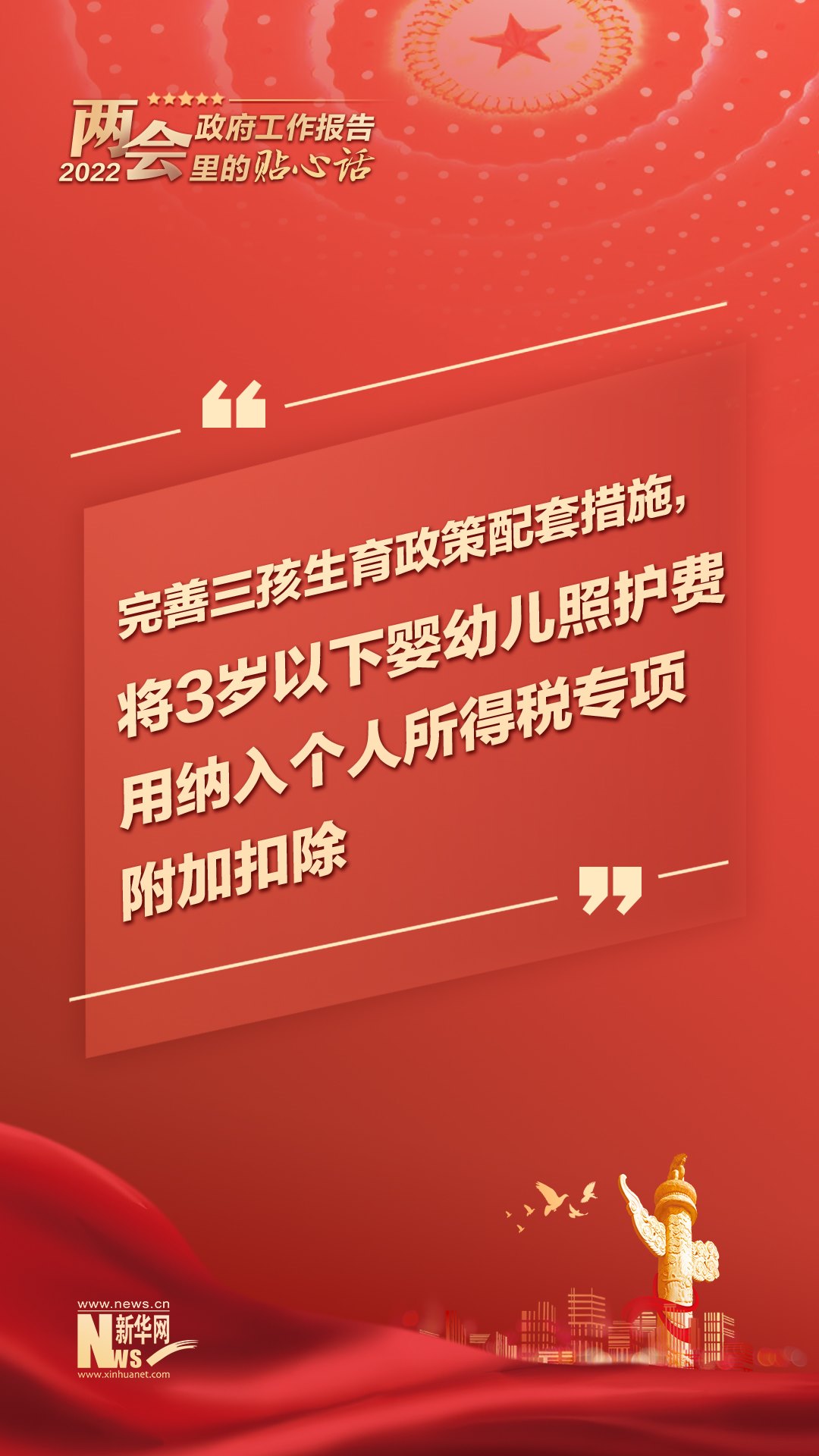 堅(jiān)持政府要過緊日子,更好節(jié)用裕民;讓三百六十行行行人才輩出;將3歲以下嬰幼兒照護(hù)費(fèi)用納入個(gè)人所得稅專項(xiàng)附加扣除;裝滿“米袋子”、充實(shí)“菜籃子”,把14億多中國(guó)人的飯碗牢牢端在自己手中……今年政府工作報(bào)告里的這些話,既貼心又有力!