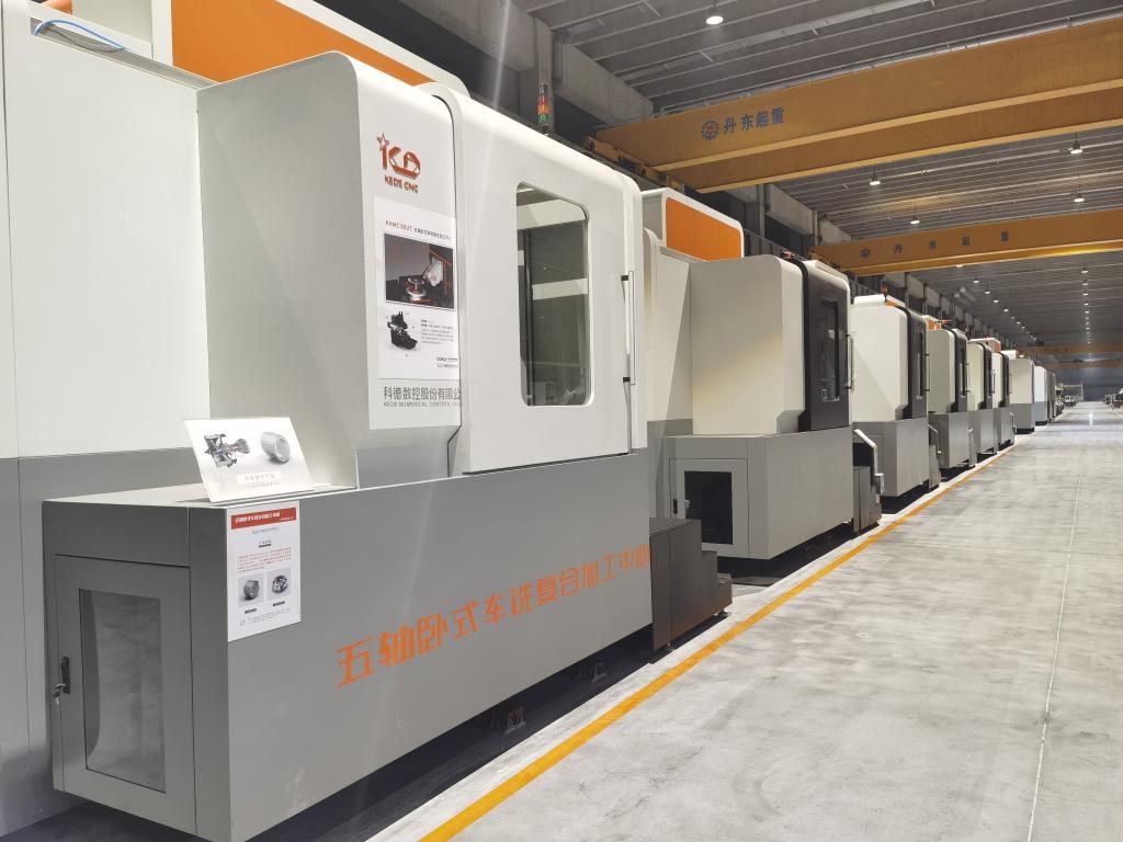 在大連光洋科技集團(tuán)25萬平方米恒溫恒濕地藏式生產(chǎn)車間,一臺臺“大塊頭”高端機床整齊排列,其中,一臺5米多高的高端五軸臥式車銑復(fù)合加工中心,十分引人注目。