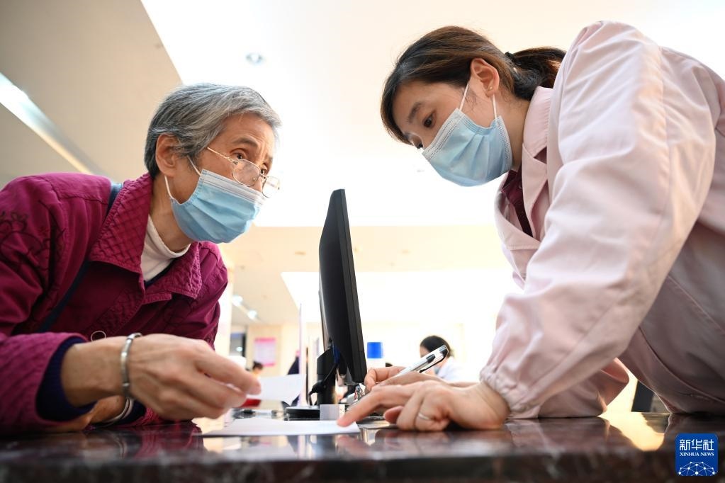 福建省三明市第一醫(yī)院醫(yī)保辦工作人員(右)向前來咨詢藥品報銷問題的居民講解相關(guān)政策(2020年11月18日攝)。新華社記者 姜克紅 攝