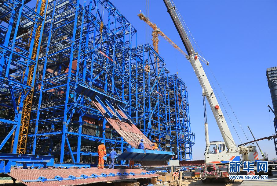 內(nèi)蒙古久泰新材料有限公司年產(chǎn)100萬(wàn)噸乙二醇項(xiàng)目鍋爐島施工現(xiàn)場(chǎng)。 -